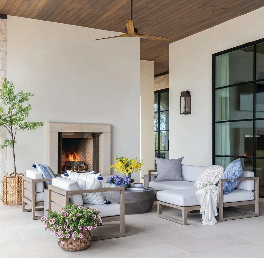 A covered patio has become one of the most desirable spaces in the home — an outdoor room designed for comfort, beauty, and effortless everyday living. Whether attached to a beach-inspired residence, a timeless traditional home, or a relaxed California retreat, these spaces offer shelter, style, and a natural extension of indoor design.