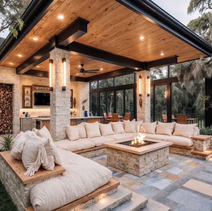 Across these 40 covered patios, the design approaches vary, yet each space shares a common goal: creating an inviting environment for gathering, dining, and unwinding outdoors. From oversized seating arrangements to carefully planned outdoor kitchens, each patio reflects how thoughtful details can transform exterior living.