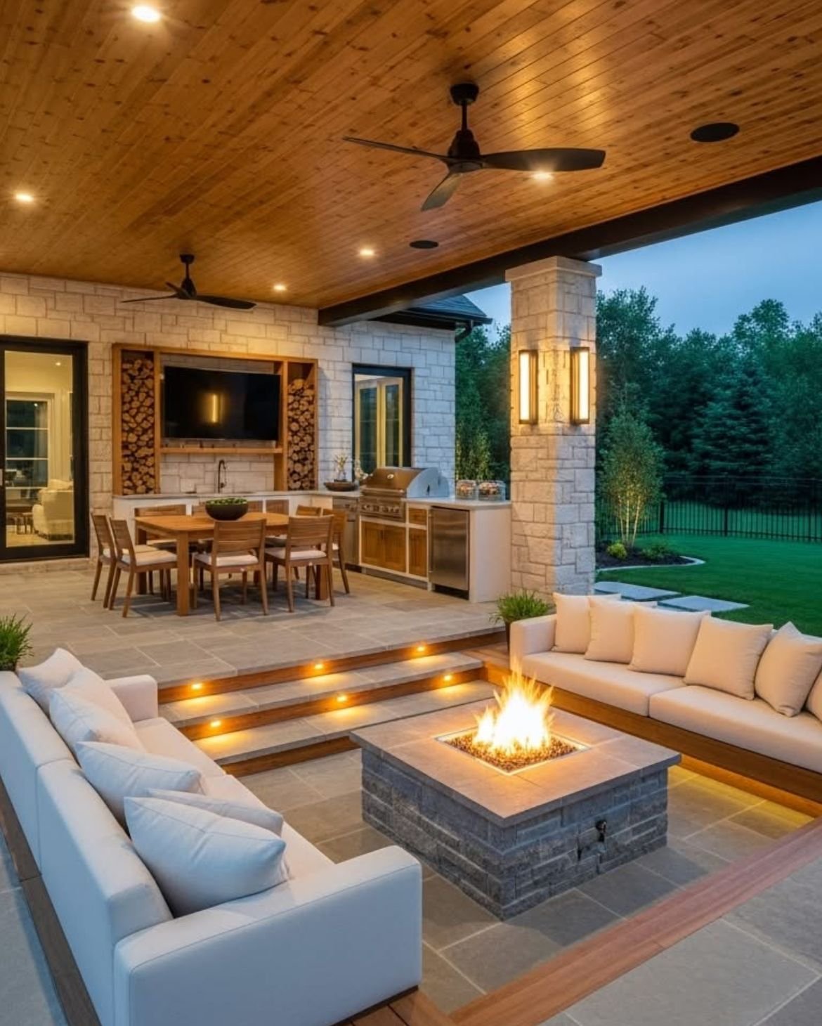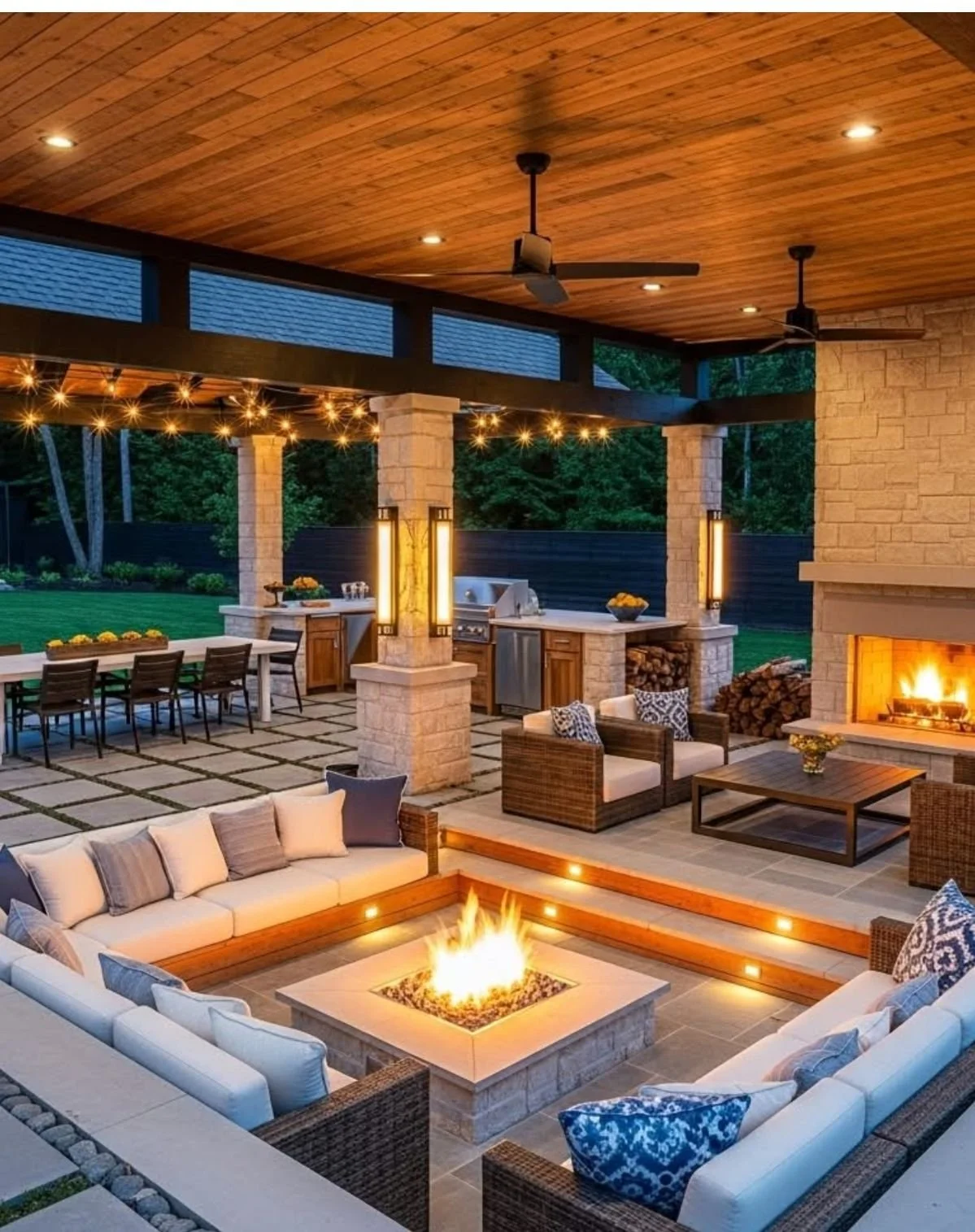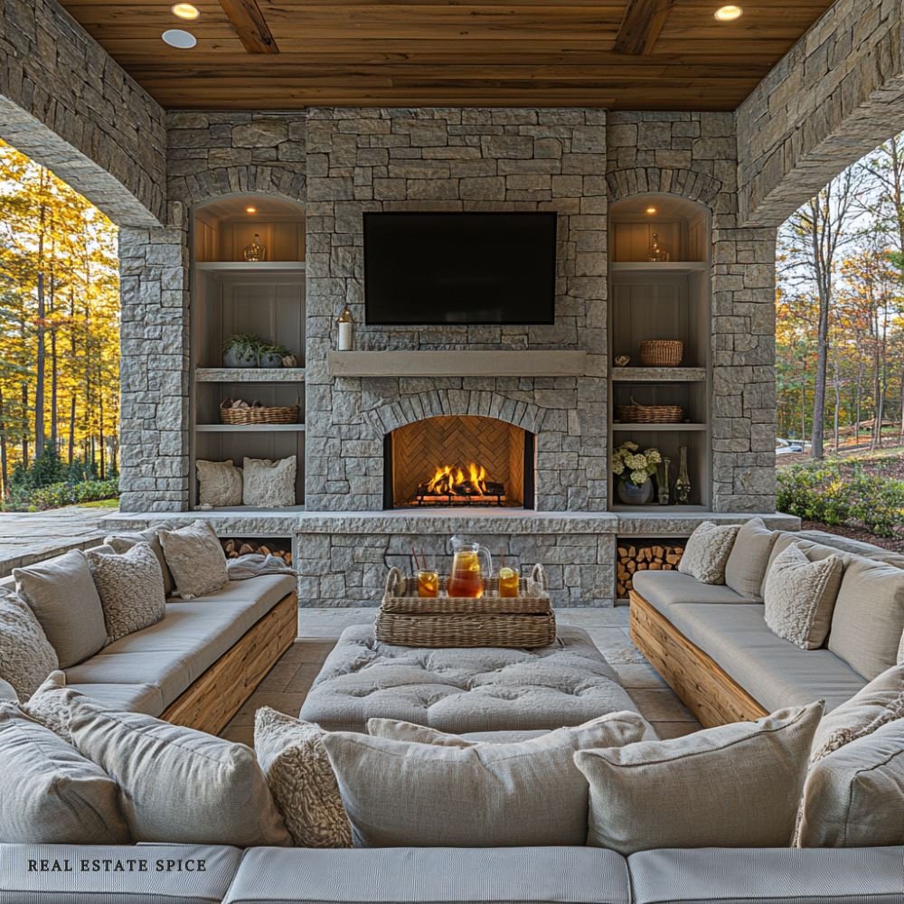 Fireplaces and firepits also extend seasonal use, making these patios comfortable well beyond warmer months.